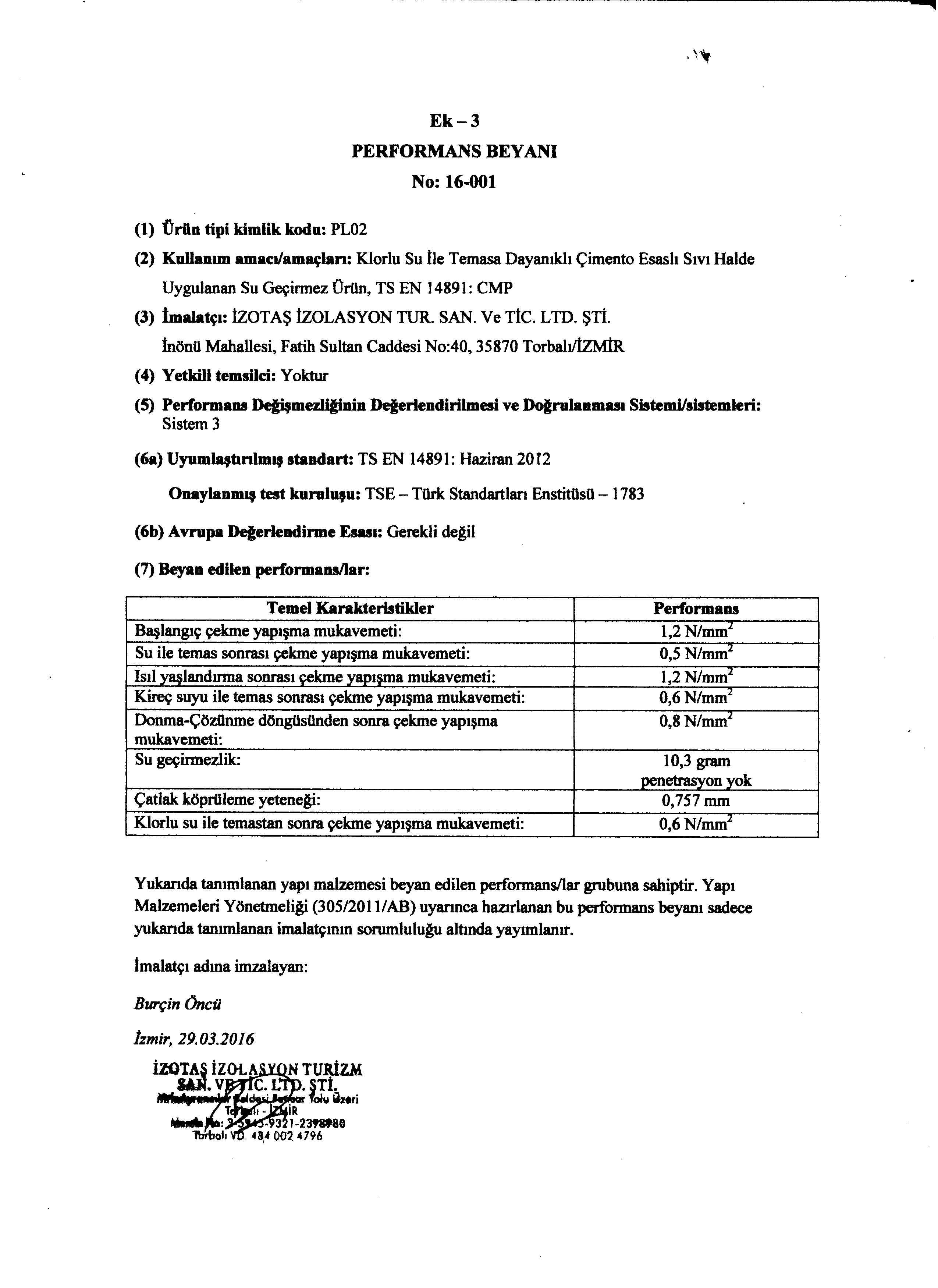 - Betonarme ve şap üzeri teraslarda, Gizli çatılarda, dere oluklarında, Beton ve demir İçme suyu depolarında, Zeytin kuyusu depolarında, Sıcak ve soğuk termal havuzlarda, Asansör Boşluklarında, Kanalizasyon ve atık su arıtma tesislerinde, Betonarme borular ve tünellerinde, Araç ve yaya trafiğine, açık ya da kapalı otoparklarda, Su basıncı olan bodrum-temel perde beton duvarlarında negatif (içten) uygulamalarda, Deniz suyuna maruz kalan temeller ve duvarlarda, Betonarme yapılarda statik hareketlilik olmayan ince kılcal çatlakların kapatılmasında, Bahçe teraslarda bitki köklerine karşı dayanım ve geçirimsizlik sağlanmasında kullanılır.